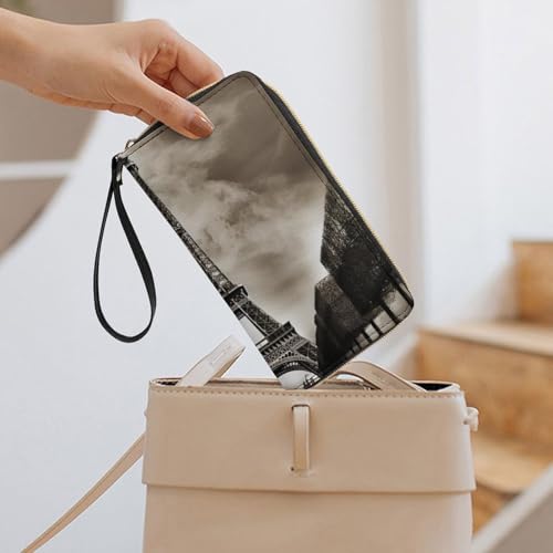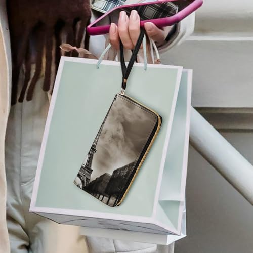 Womens Leather Wallets Paris Eiffel Tower Wallet for Women Large Capacity Card Phone Holder Ladies Purse with Wriststrap 1