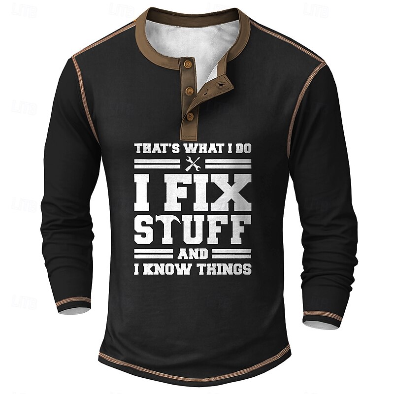 More information about Men's Funny slogans Henley Shirt Tee Long Sleeve Vintage Fashion Designer Outdoor Casual Daily Spring Spring & Fall Army Green Dark Brown Dark Gray Black Navy Blue Henley Henley T-Shirt