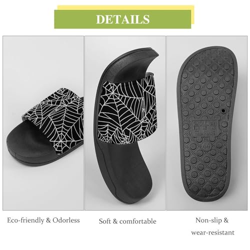 More information about Black White Spider Web Halloween Womens Slide Sandals Non Slip Summer House Slippers for Girls Slip-on Flip Flops