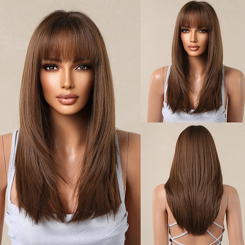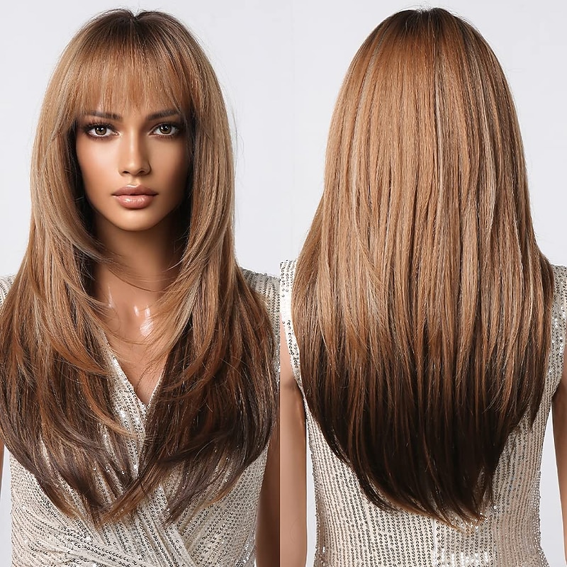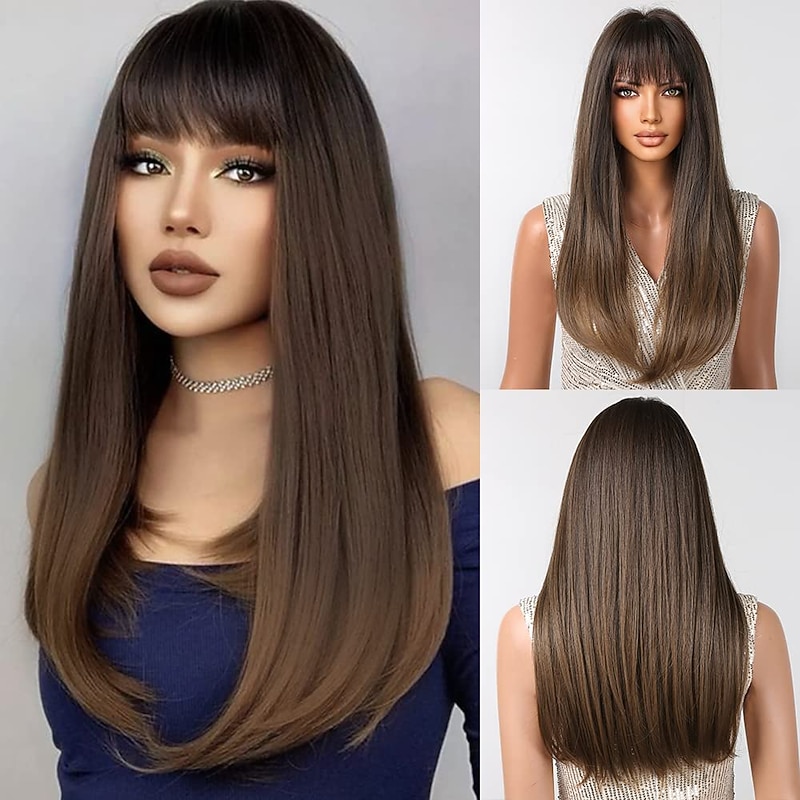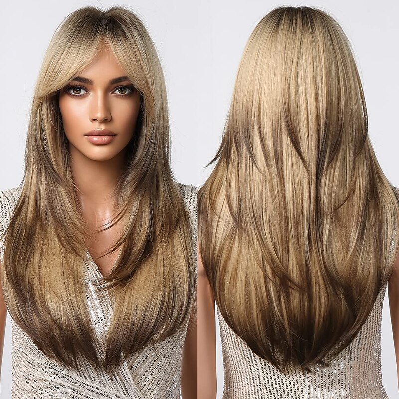 $21.99 - Blonde Brown Ombre Wigs For Black Women Long Layered Straight Wigs With Air Bangs Synthetic Wigs Natural Hair For Daily Party Use barbiecore Wigs 2025. Shop for cheap Synthetic Trendy Wigs online? Buy at lightinthebox.com on sale today!