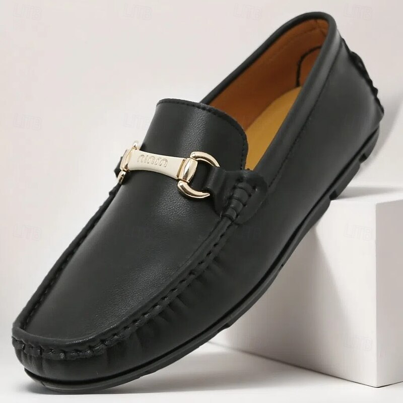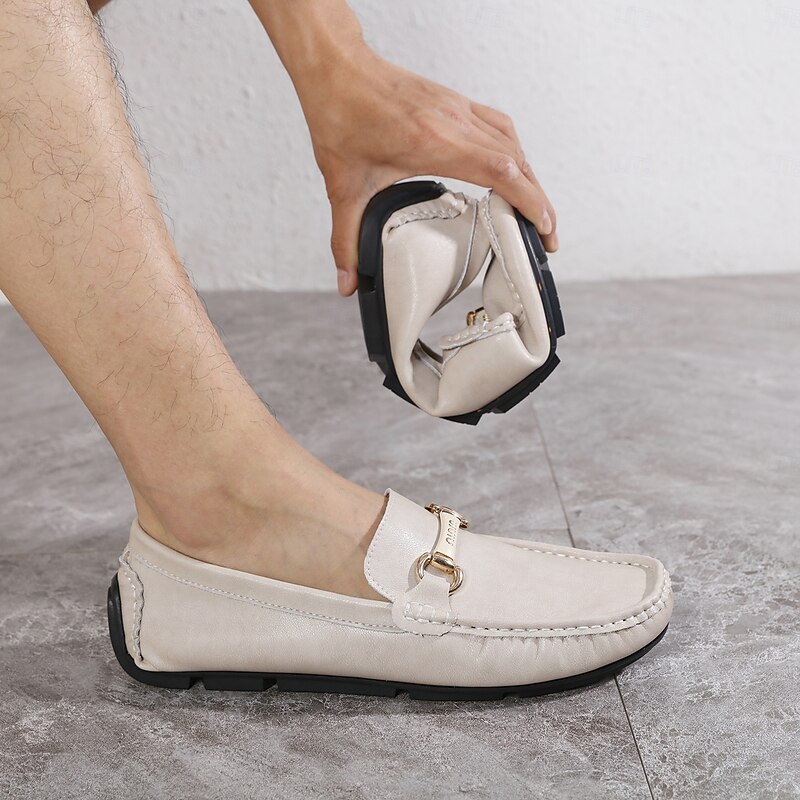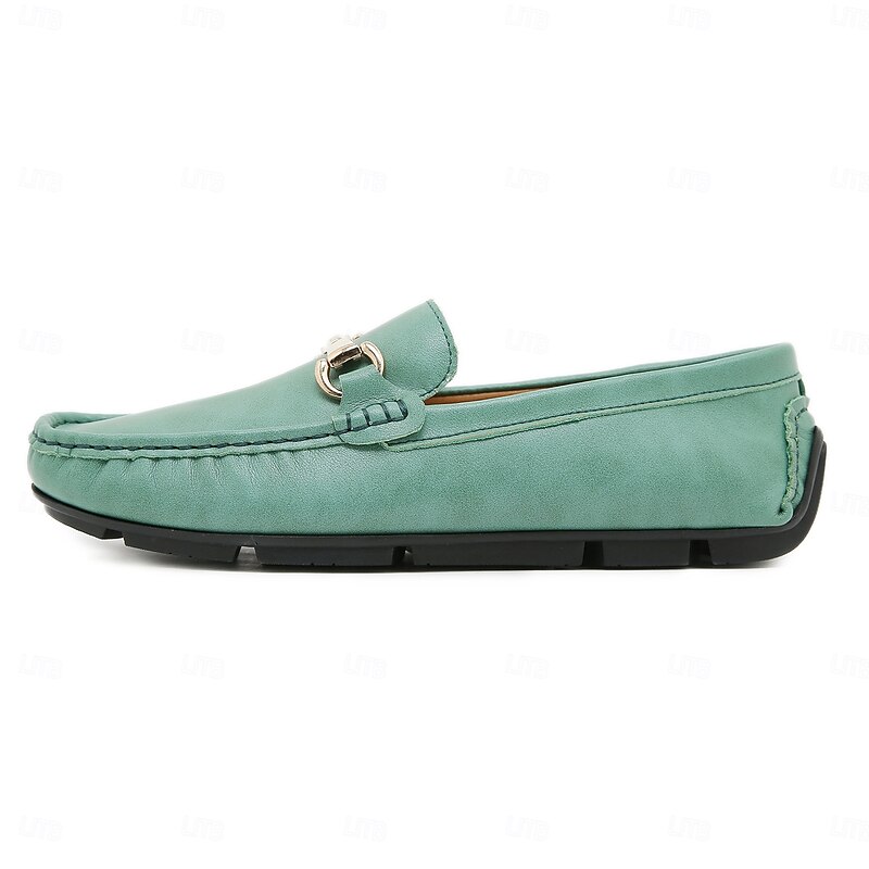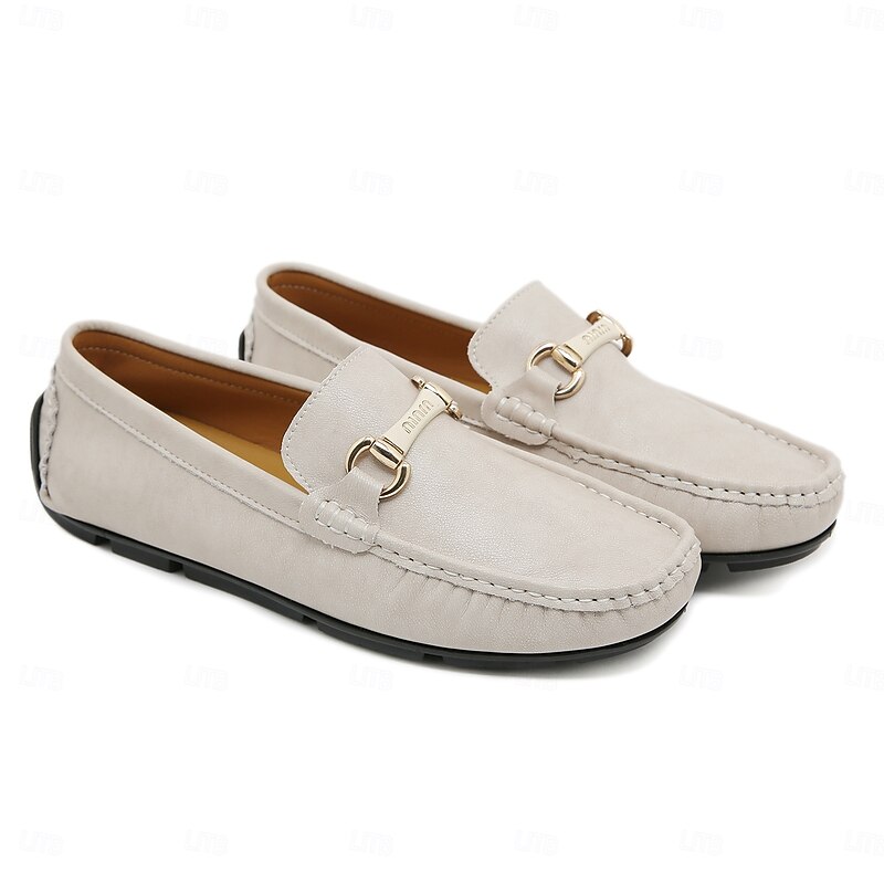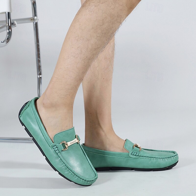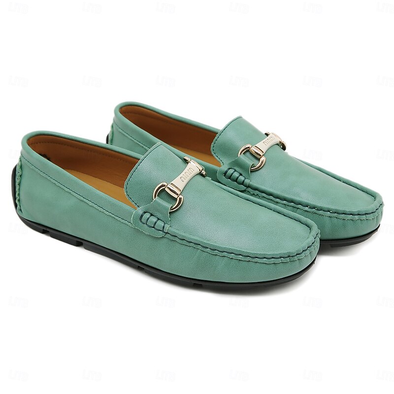 Men's Yellow Moccasins with Metal Buckle, Casual Slip-On Driving Shoes, Perfect for Spring and Summer Vacations 28