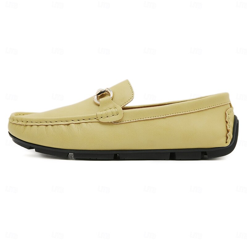 Men's Yellow Moccasins with Metal Buckle, Casual Slip-On Driving Shoes, Perfect for Spring and Summer Vacations 7