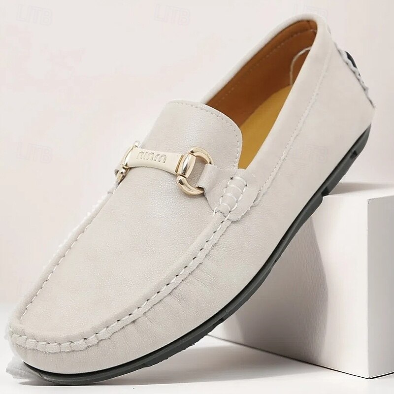 Men's Yellow Moccasins with Metal Buckle, Casual Slip-On Driving Shoes, Perfect for Spring and Summer Vacations 31