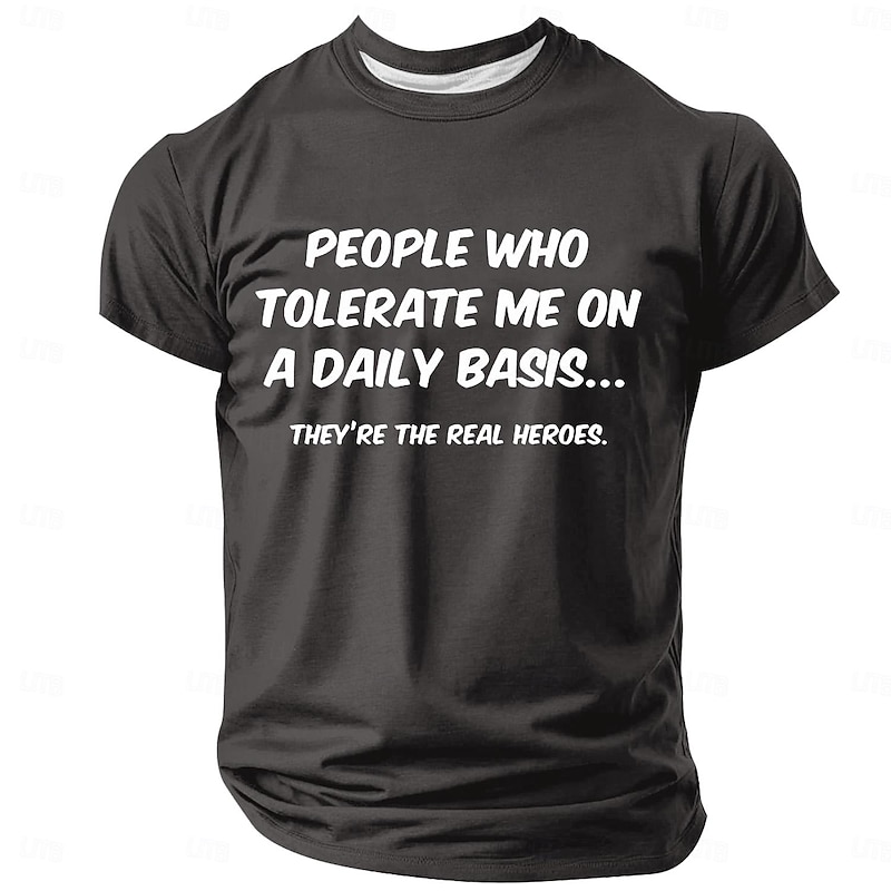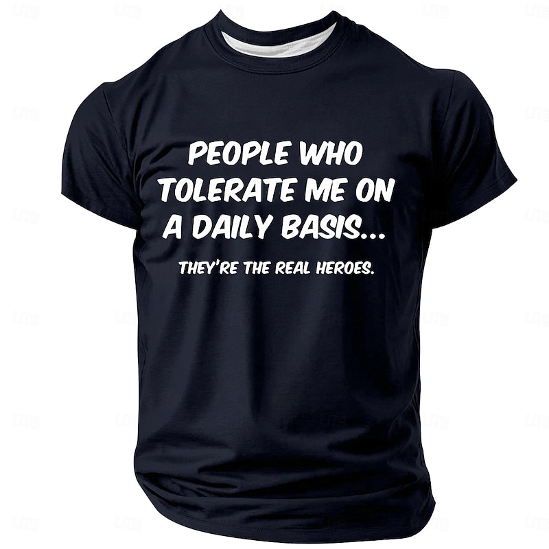 HOT ! Men's Funny Short Sleeve T-Shirt - 'People Who Tolerate Me Daily Are The Real Heroes' Relationship Humor Tee
