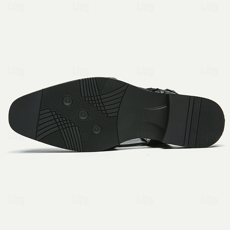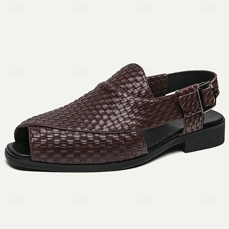 Highlights [Fabric] Crafted from high-quality microfiber with a PU lining, these men's sandals are designed for durability and breathability. The elegant faux leather gives a sleek, chic appearance, perfect for any occasion. [Fit] The open-toe style provides a modern and comfortable fit, while the adjustable buckle strap ensures a customizable and secure wear, adapting to various foot shapes for optimal comfort. [Design Highlights] Featuring a sophisticated woven pattern, these black sandals combine traditional craftsmanship with contemporary flair. The textured rubber sole offers slip resistance and stability, enhancing the practical wearability of the sandals for everyday use. [Occasions] Ideal for a range of settings, these sandals seamlessly transition from casual outings to more formal gatherings. Their versatile design makes them suitable for both relaxed weekend wear and stylish evening events, adding a touch of elegance to any outfit. [Size Notice] Available in multiple sizes, from US6 to US11, these sandals cater to a wide variety of foot sizes, ensuring an inclusive fit for many wearers. Perfect for everyday use. supreme materials and excellent craftsmanship ensure long-lasting durability.