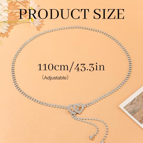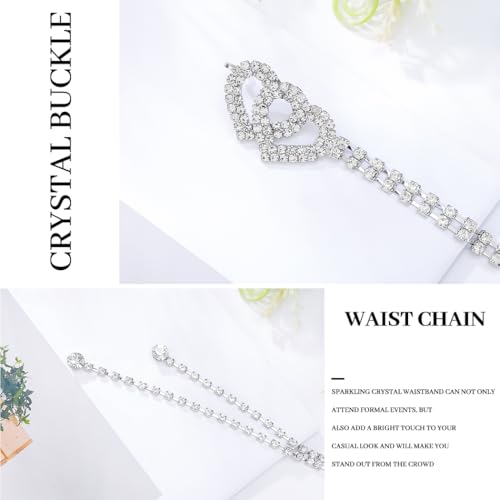 Abien Rhinestone Belts for Women Silver Crystal Waist Chain Heart Chain Belt Thin Rhinestone Belt for Dresses 4
