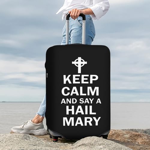 HOT ! Keep Calm and Say A Hail Mary Religion Travel Luggage Cover Suitcase Protector Fits 29-32 Inch Case(Black,XL)