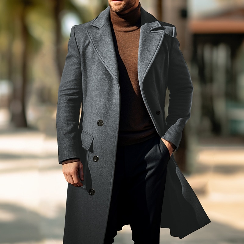 More information about Men's Winter Coat Overcoat Peacoat Outdoor Daily Wear Fall & Winter Polyester Thermal Warm Waterproof Outerwear Clothing Apparel Fashion Streetwear Plain Lapel Double Breasted