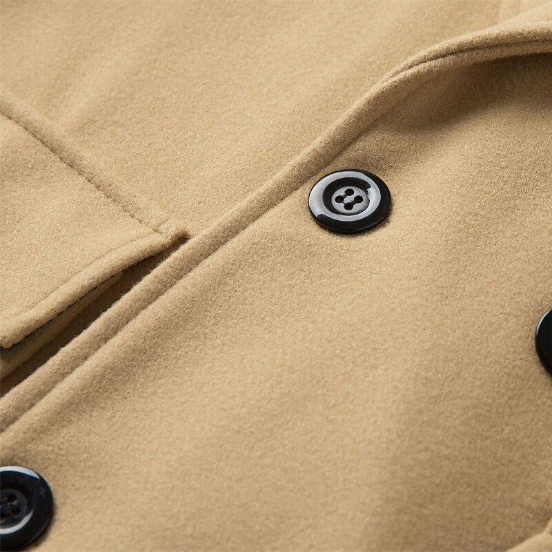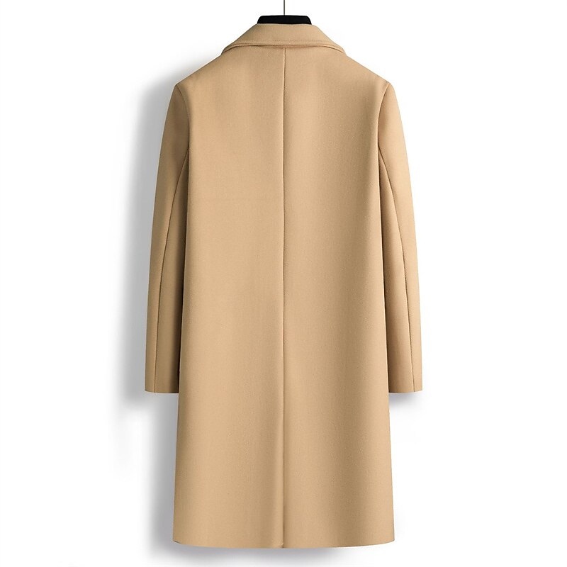 Men's Winter Coat Overcoat Peacoat Outdoor Daily Wear Fall & Winter Polyester Thermal Warm Waterproof Outerwear Clothing Apparel Fashion Streetwear Plain Lapel Double Breasted 5