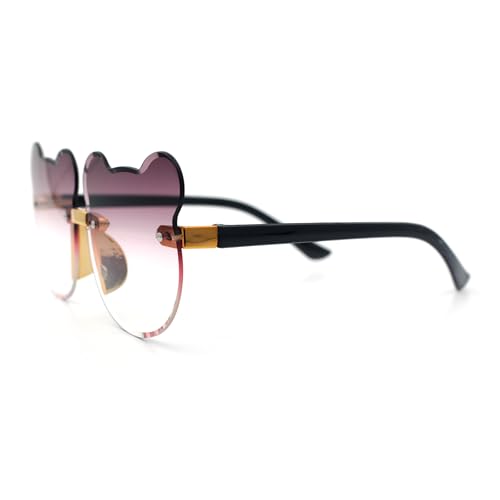 Kids Childs Rimless Teddy Bear Shape Bevel Lens Plastic Sunglasses Gold - Smoke 3