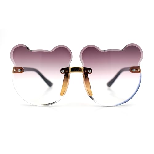 Kids Childs Rimless Teddy Bear Shape Bevel Lens Plastic Sunglasses Gold - Smoke 5
