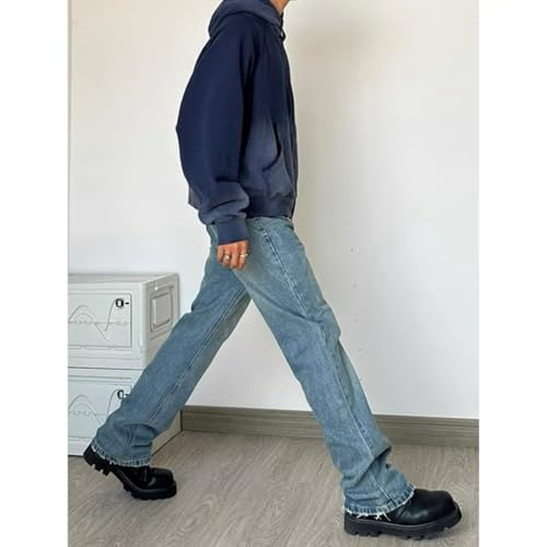 Jeans Pants Trouser Denim Trendy Street Retro Washed Blue Fringed Micro Flared Casual Straight Leg Commuting for Men 6