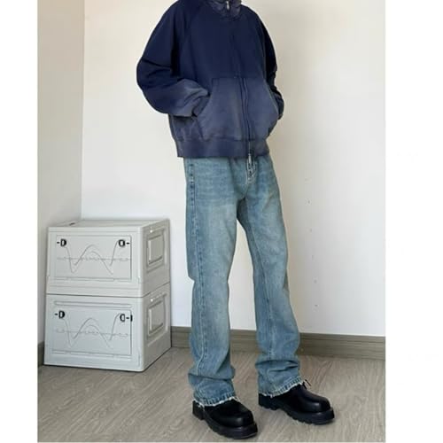 More information about Jeans Pants Trouser Denim Trendy Street Retro Washed Blue Fringed Micro Flared Casual Straight Leg Commuting for Men