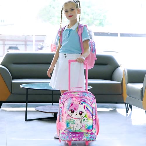 • Perfect Gift: Cool appearance attracts the envious eyes of passersby. This kids cat rolling luggage can carry your girl's clothes,and more to accompany her on trips or to grandma's house.