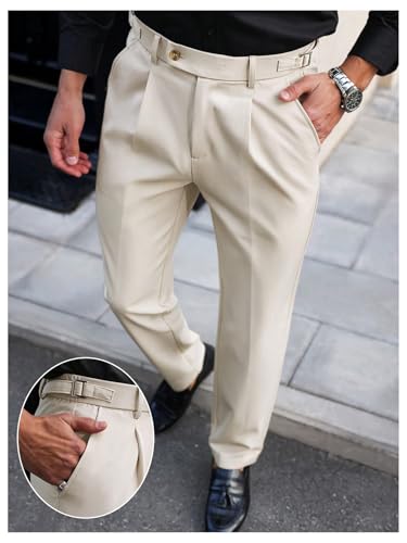 HOT ! GORGLITTER Men's Button Fly Dress Pants Straight Leg Pleated Work Chino Pants with Pockets