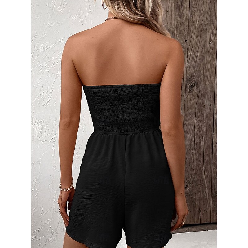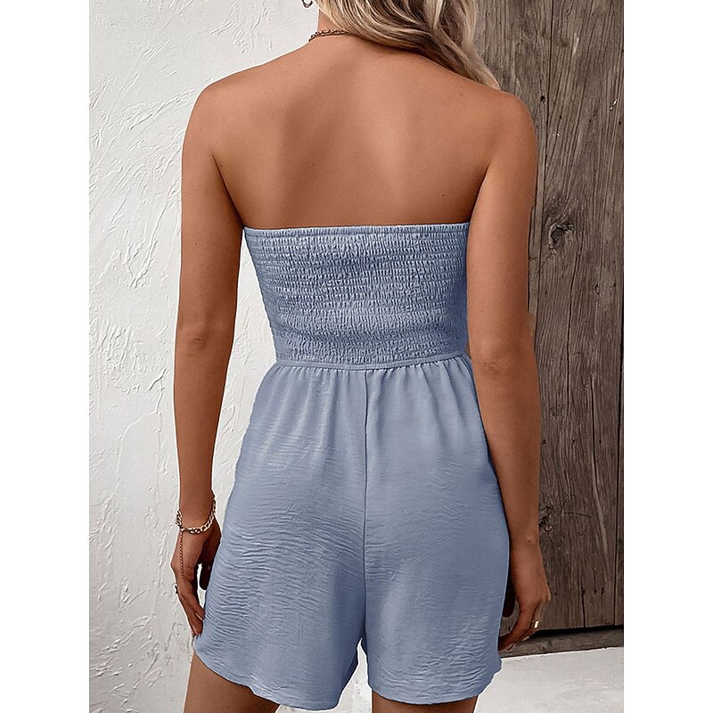 More information about Women's Normal Romper Active Solid Color Sleeveless Strapless Buttons Drawstring Vacation Daily Regular Fit Black Blue Green Summer