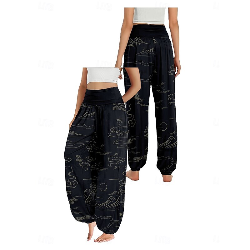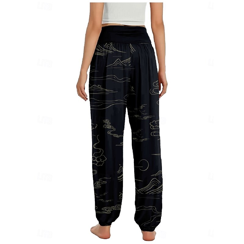 More information about Women's Linen-Inspired Pants Wide Leg Pants Trousers Ethnic Style Casual Boho Full Length High Waist Floral Pocket Elastic Waist Printing Breathability Soft Micro-elastic Outdoor Yoga Forest Green