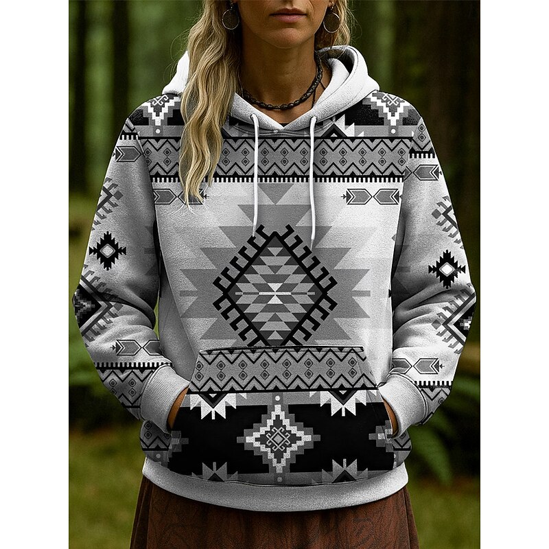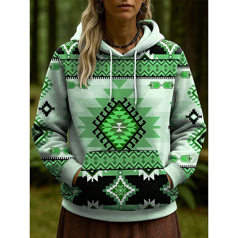 More information about Women's Pullover Hoodie Sweatshirt Graphic Geometric Casual Long Sleeve Hooded Regular Tops Party Evening Wear Street Dailywear Blue Purple Brown Green Gray Spring Fall Winter