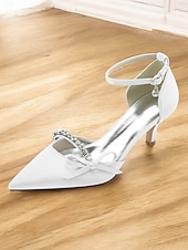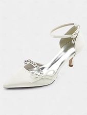 More information about Pointed-Toe Kitten Heel Wedding Shoes for Women – Elegant Ankle Strap Bridal Heels with Rhinestone and Bow Detail