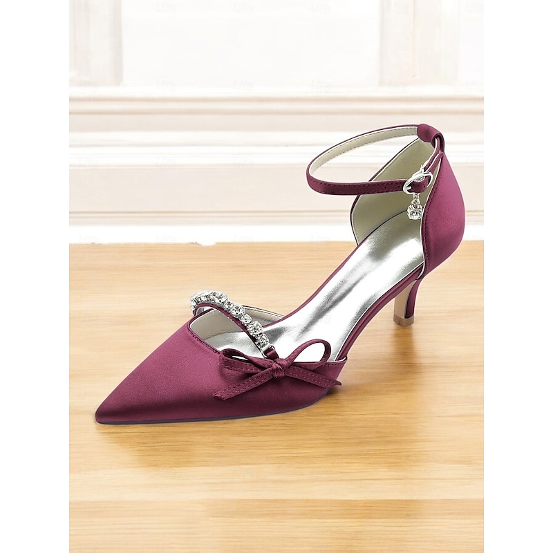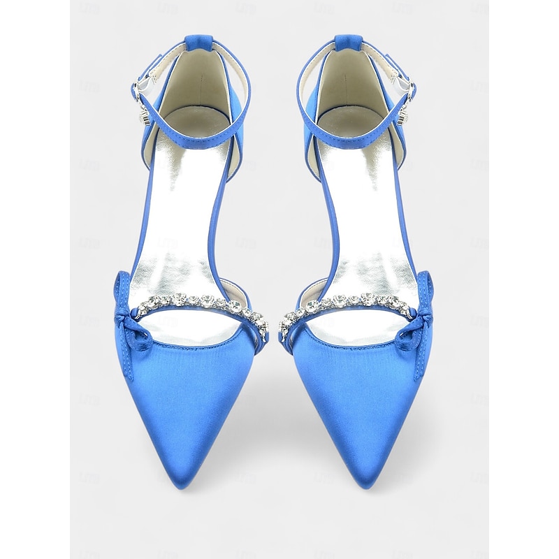 Highlights - Luxurious satin upper materials - Sparkling rhinestone embellishment - Sleek pointed toe shape - Durable rubber outsole materials