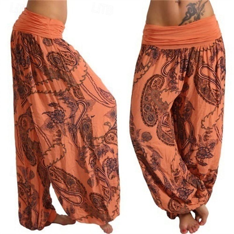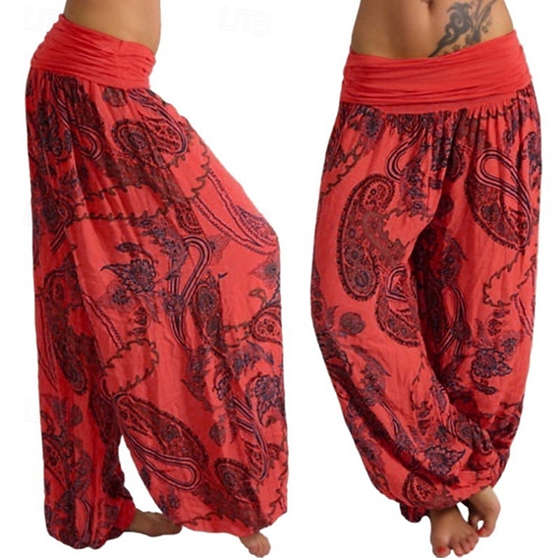 More information about Women's Pants Trousers Harem Pants Palazzo Pants Fashion Boho Full Length Mid Waist Print Elastic Waist Comfy Comfortable Micro-elastic Street Daily Wear Going out Black Yellow Red Navy Blue Summer
