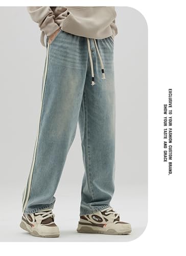 More information about Pants Trousers Denim Spring and Autumn Washed Striped Wide Leg Jeans for Men High Street Loose Straight