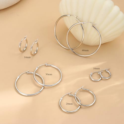 • [5-Pack Sterling Silver Hoop Earrings Set for Women - Small to Large Sizes] This complete collection includes 5 pairs of classic sterling silver hoop earrings for women, featuring versatile sizes from delicate 10mm small hoop earrings to bold 40mm large silver hoops. Whether you prefer minimalist small sterling silver hoops, everyday medium silver hoop earrings, or eye-catching big hoop earrings for women, this set covers all styles. Crafted with premium 925 sterling silver posts and hypoallergenic materials, these nickel-free and lead-free silver hoops are perfect for sensitive ears. Mix and match these timeless silver hoop earrings to create layered looks or wear them individually