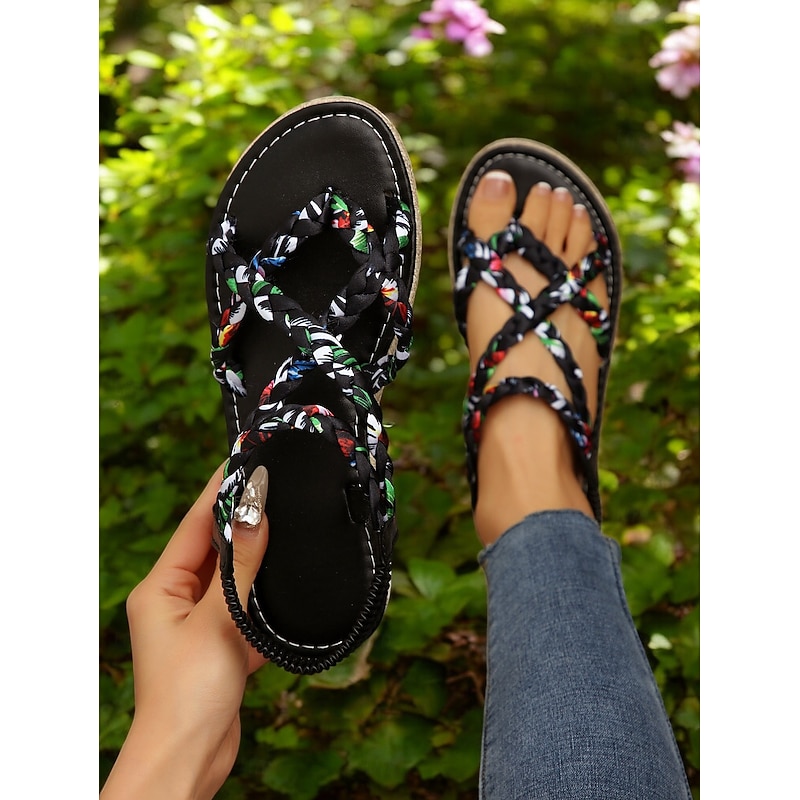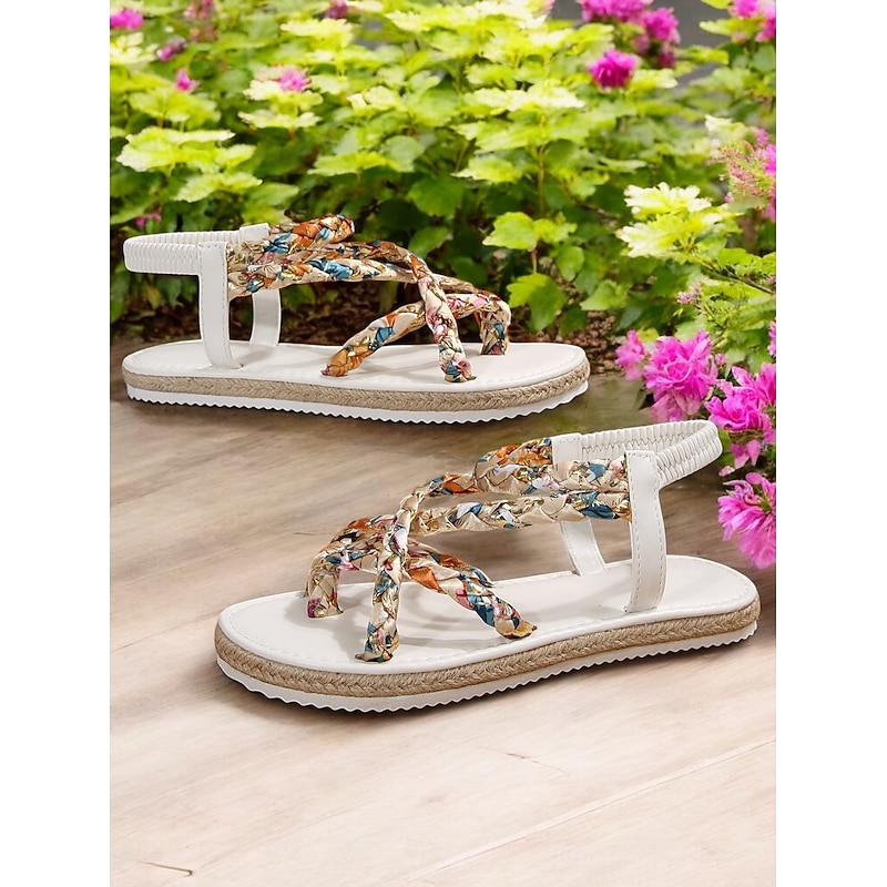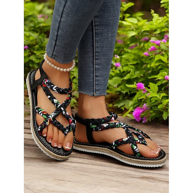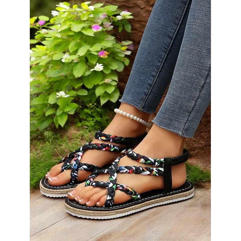 HOT ! Women's Braided Strap Flat Sandals – Colorful Boho Style Summer Beach Shoes, Comfortable Slip-On Footwear for Casual Outings, Vacations, and Daily Wear