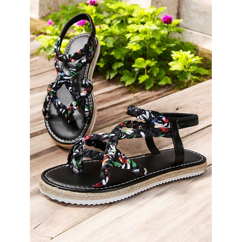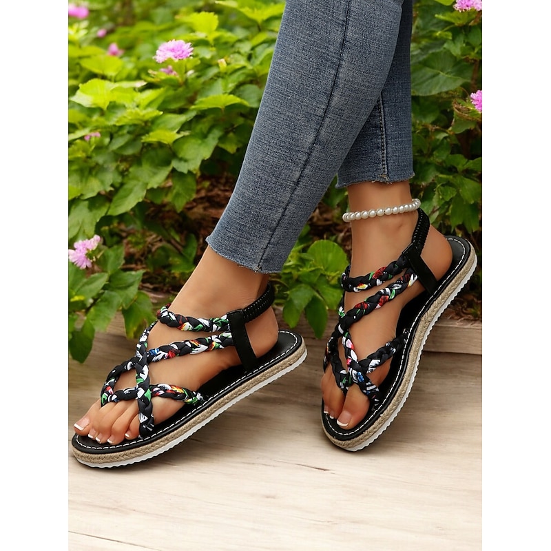 Women's Braided Strap Flat Sandals – Colorful Boho Style Summer Beach Shoes, Comfortable Slip-On Footwear for Casual Outings, Vacations, and Daily Wear 1