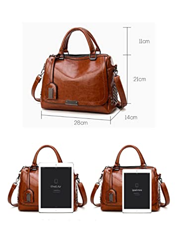 More information about YAQUNICER Women Retro Rivet Top-handle Bag Oil Wax Leather Shoulder Crossbody Bags