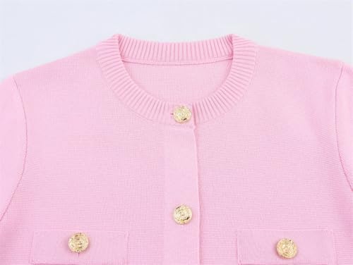 Women's 2 Piece Sweater Skirt Set Round Neck Short Sleeve Buttons Knitted Cardigan Bodycon Mini Skirt 5
