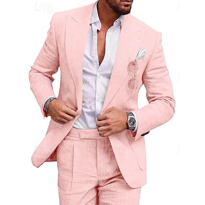 More information about Men's Linen Suits Beach Wedding Summer Suits Solid Colored 2 Piece Tailored Fit One-Button Champagne Beige