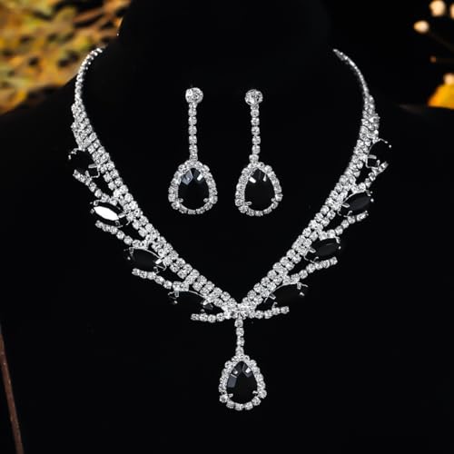 EARENT Wedding Jewelry Sets Black Bridal Prom Rhinestone Necklace and Earring for Women 1