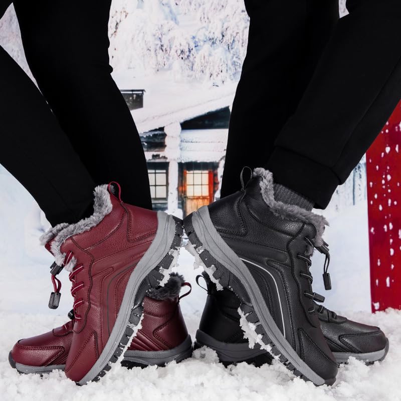 • 【WATERPROOF AND WARM】: These waterproof snow boots are made of high-quality waterproof leather, effectively blocking snow and water penetration. They're also easy to maintain, eliminating the worry of getting dirty.