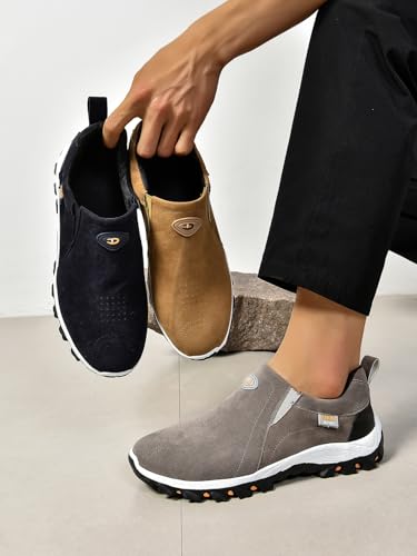 ZDLJYL Men's Suede Slip On Waterproof Anti-Slip Lightweight Orthopedic Fashion Loafers,Casual Breathable Low-top Safety Sneakers Walking Boat Shoe 5