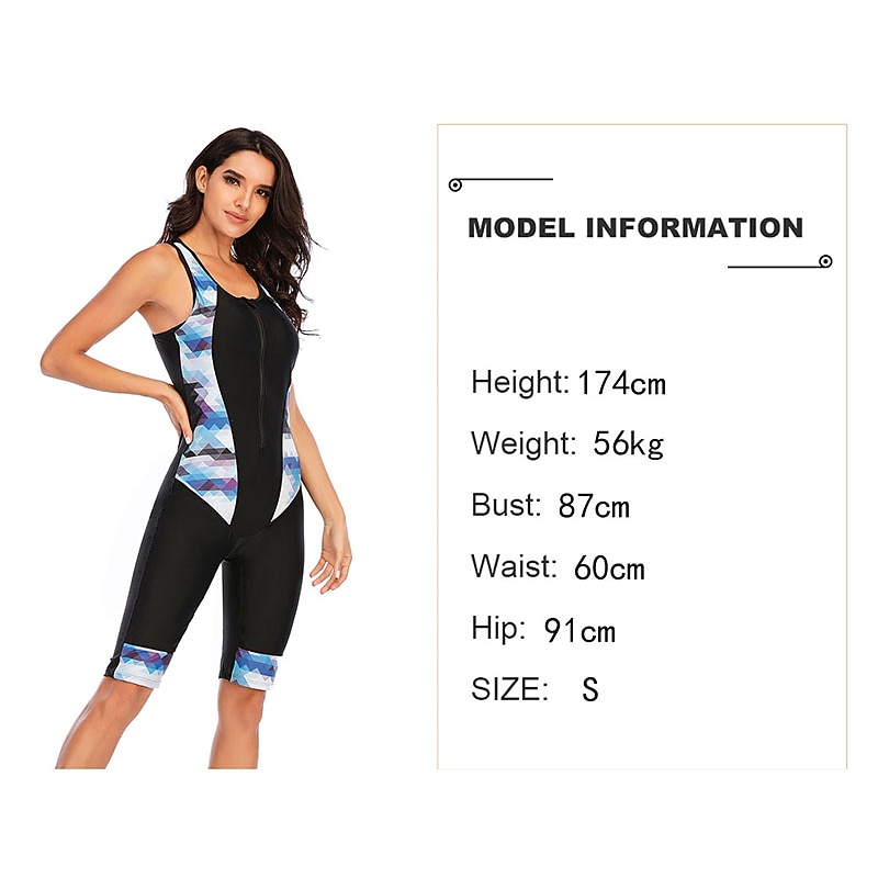 More information about Women's Rash Guard One Piece Swimsuit UV Sun Protection Breathable Quick Dry Sleeveless Bodysuit Bathing Suit Front Zip Boyleg Knee Length Swimming Surfing Beach Water Sports Patchwork Summer