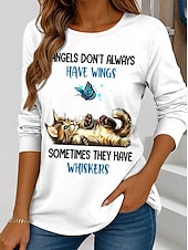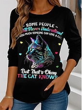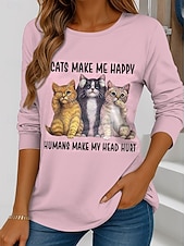 More information about Women's T shirt Crew Neck Long Sleeve Tunic Graphic Cat Letter Vintage Stylish Classic Round Neck Regular Tops Daily Weekend Print White / Black Black White Pink Green Spring Fall