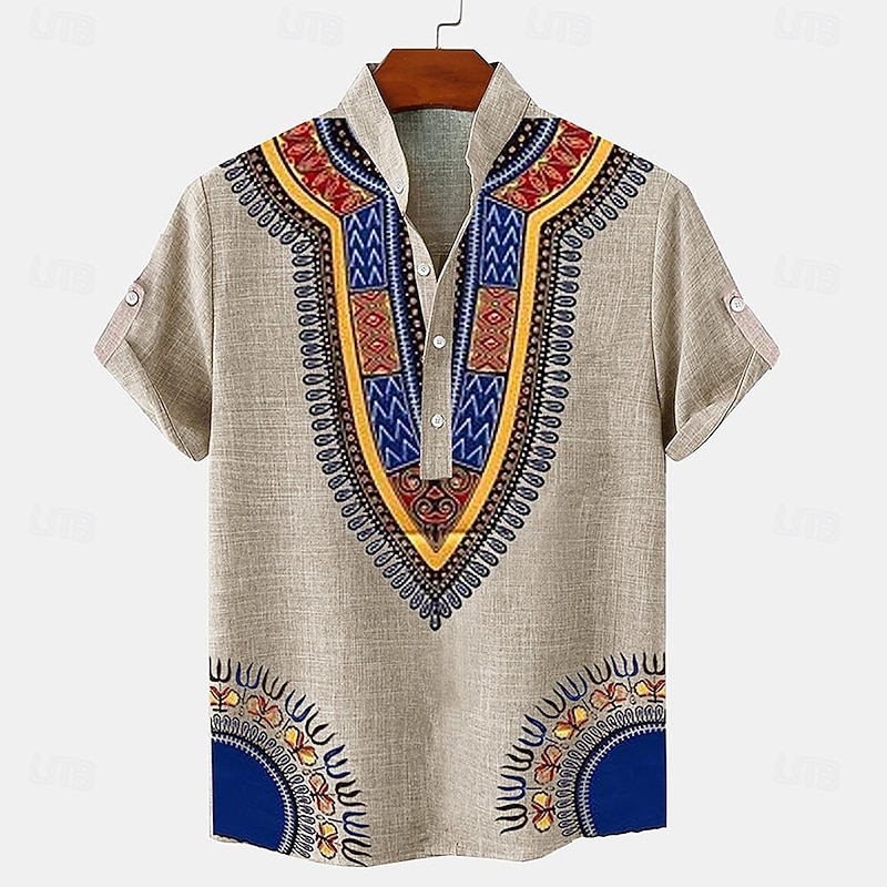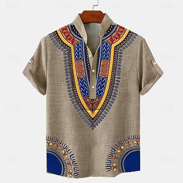 More information about Men's Linen Shirt Henley Shirt Retro Shirts Vintage Shirt Ethnic Shirt Vacation Daily Green Khaki Beige Short Sleeve Mandarin Collar Summer Spring Clothing Apparel 3D Print