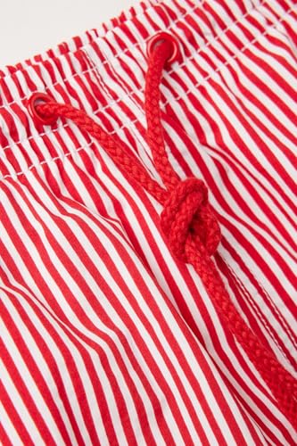 Man's Red Stripe Print Swim Trunks 5