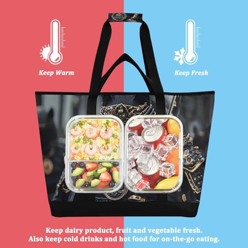 Bear Samurai Black Large Insulated Tote Bag for Grocery Shopping Reusable Tote Bags for Women Men, Cooler Bag with Zippered Top & Handles for Beach Picnic Travel 5