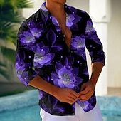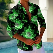 More information about Men's Floral Print Neon Glow Flowers Shirt Button Up Shirt Long Sleeve Fashion Casual Holiday Streetwear Summer Spring Turndown 3D Print Collared Shirts Light Green Blue Purple Green
