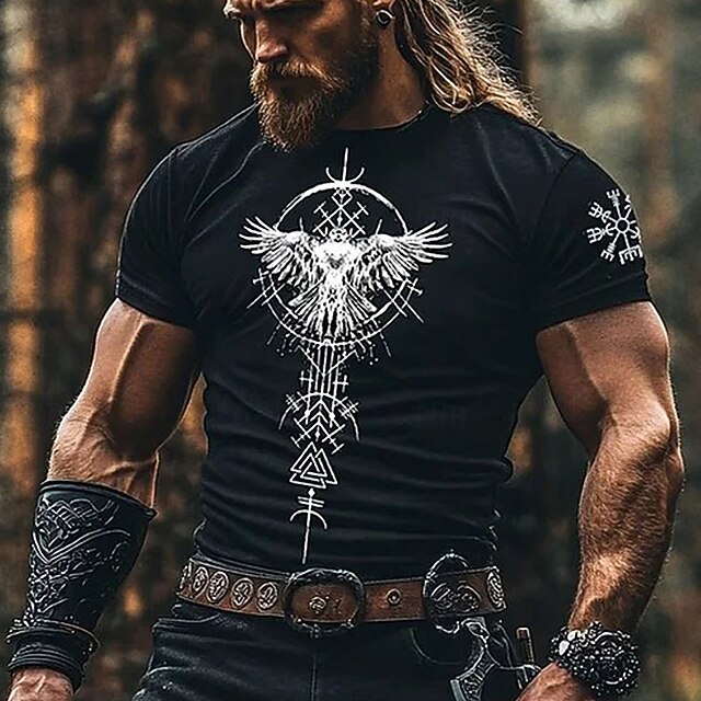 More information about Men's Viking T Shirt Short Sleeve T shirt 3D Print Crew Neck Shirt Fashion Daily Basic Street Casual Daily Black 1 Black Black 2 Summer Spring All Seasons Clothing Apparel S M L XL XXL XXXL
