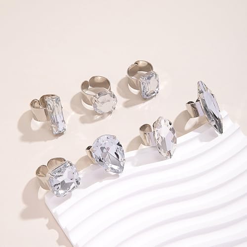 More information about Chunky 7Pcs Silver Crystal Knuckle Rings Set Geometric Rhinestone Waterdrop Open Rings Stackable CZ Circle Square Finger Rings Jewelry Set for Women