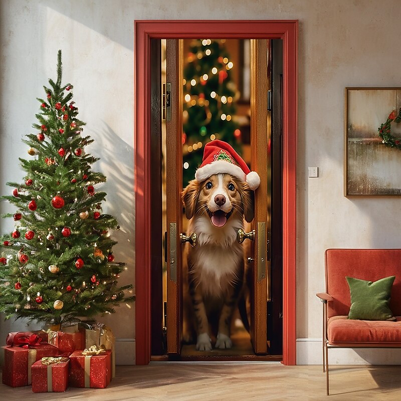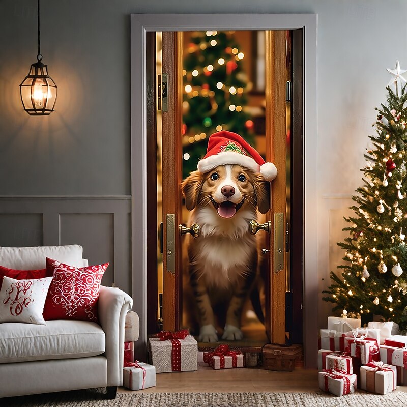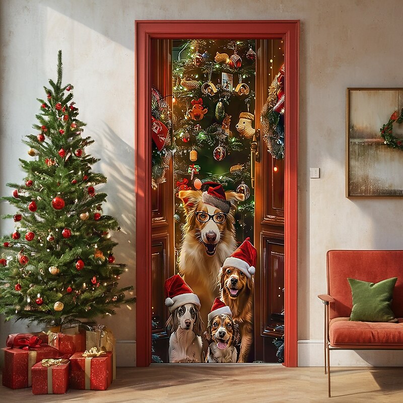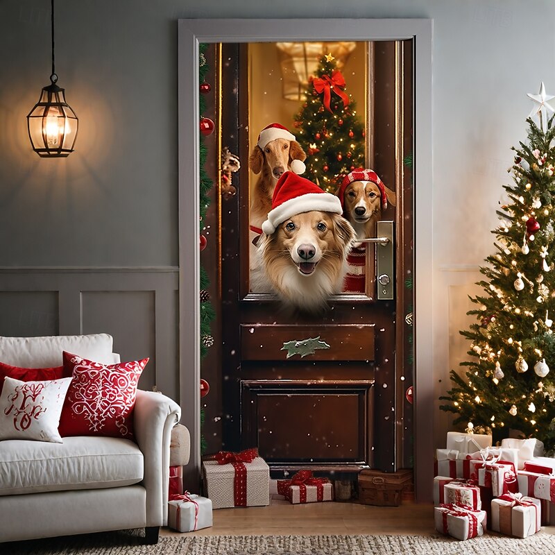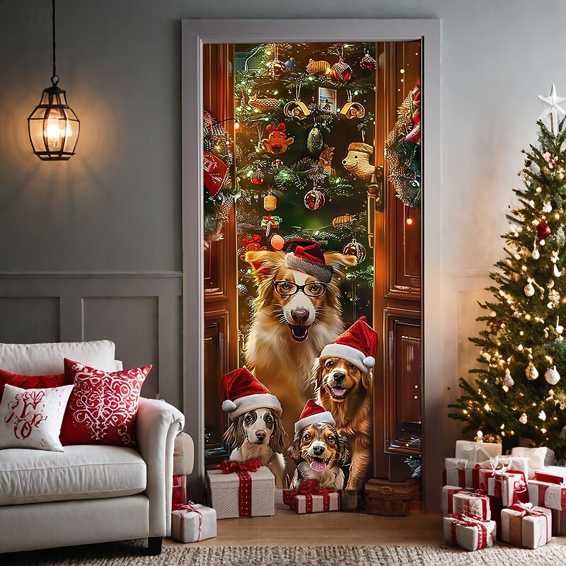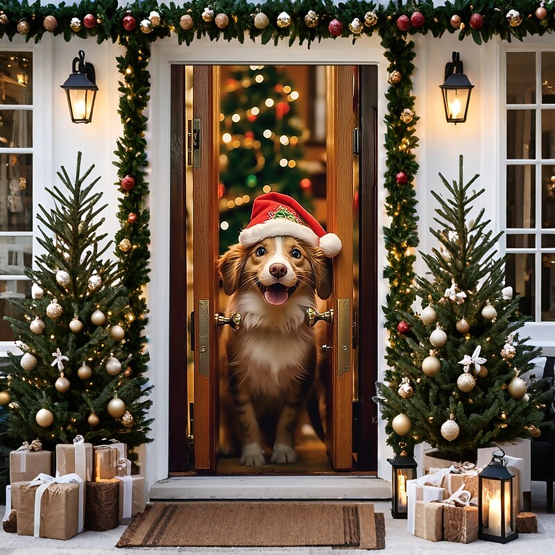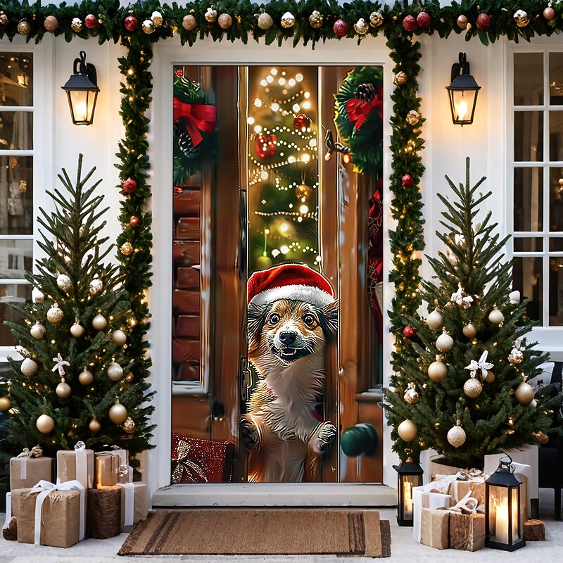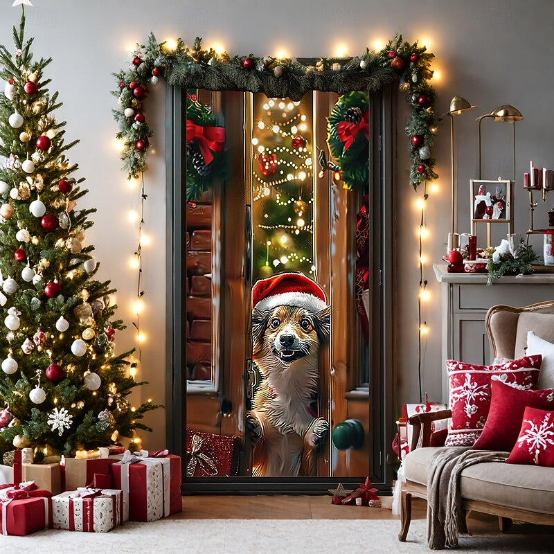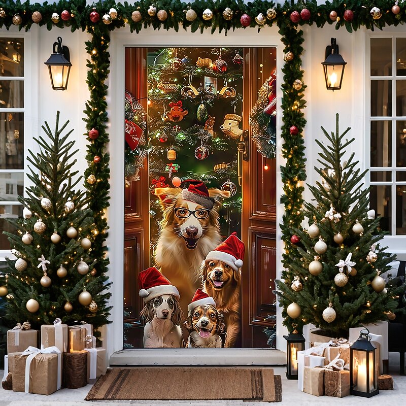 Why Choose Christmas Door Decorations Door Covers Xmas Animal Dog Door Tapestry Door Curtain Decoration Backdrop Door Banner for Front Door Farmhouse Holiday Party Decor Supplies Indoor/Outdoor?