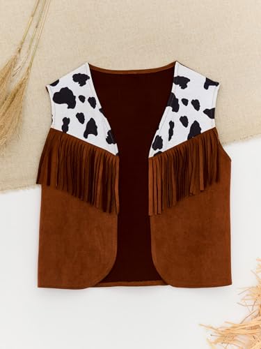 JEATHA Kids Cowboy Vest Sleeveless Suede Leather Fringed Cow Print Jacket for Halloween Carnival Party 6