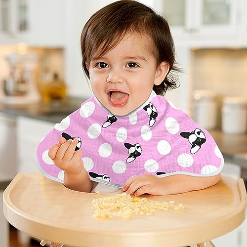 French Bulldog Dog Pink Polka Dot Muslin Burp Cloths for Baby 1 Pack Soft 100% Cotton Baby Washcloths Bibs for Boy Girl 2