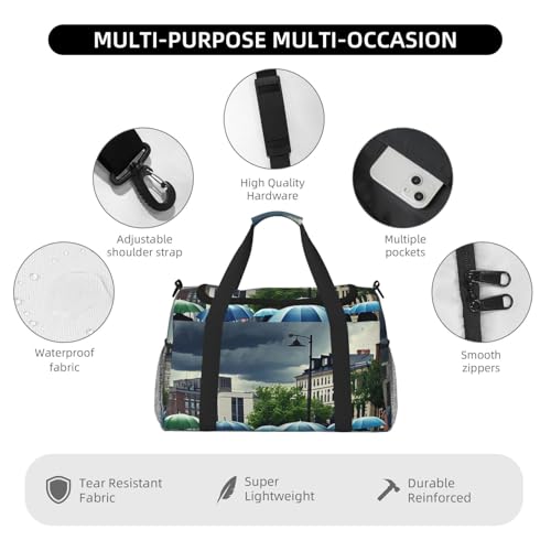 HOT ! Sadness Stormy Day Umbrellas Print Travel Duffel Bag for Men & Women, Foldable Travel Bags and Spacious Weekender Tote Bag for Storage Toiletry Luggage Personal Item