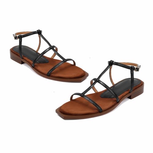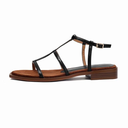 Women's Comfortable Low Heel Summer Open Toe Strappy Flat Gladiator Sandals 6