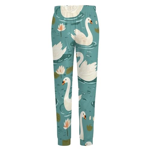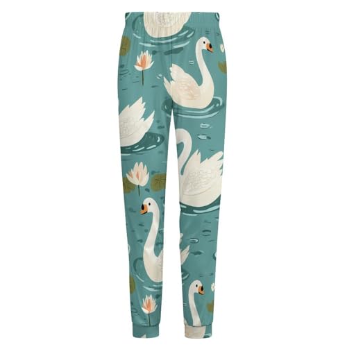 HOT ! Ponds Swans Water Lilies Men's Pajama Bottoms Sleep Lounge Soft Comfy Pants Sleepwear