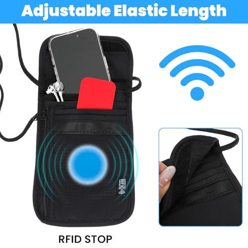 Travel Neck Wallet RFID Blocking Passport Holder 5.5" x 7.9" Adjustable Neck Pouch Lightweight Passport Travel Wallet Waterproof Security Organizer Case for Women Men 6